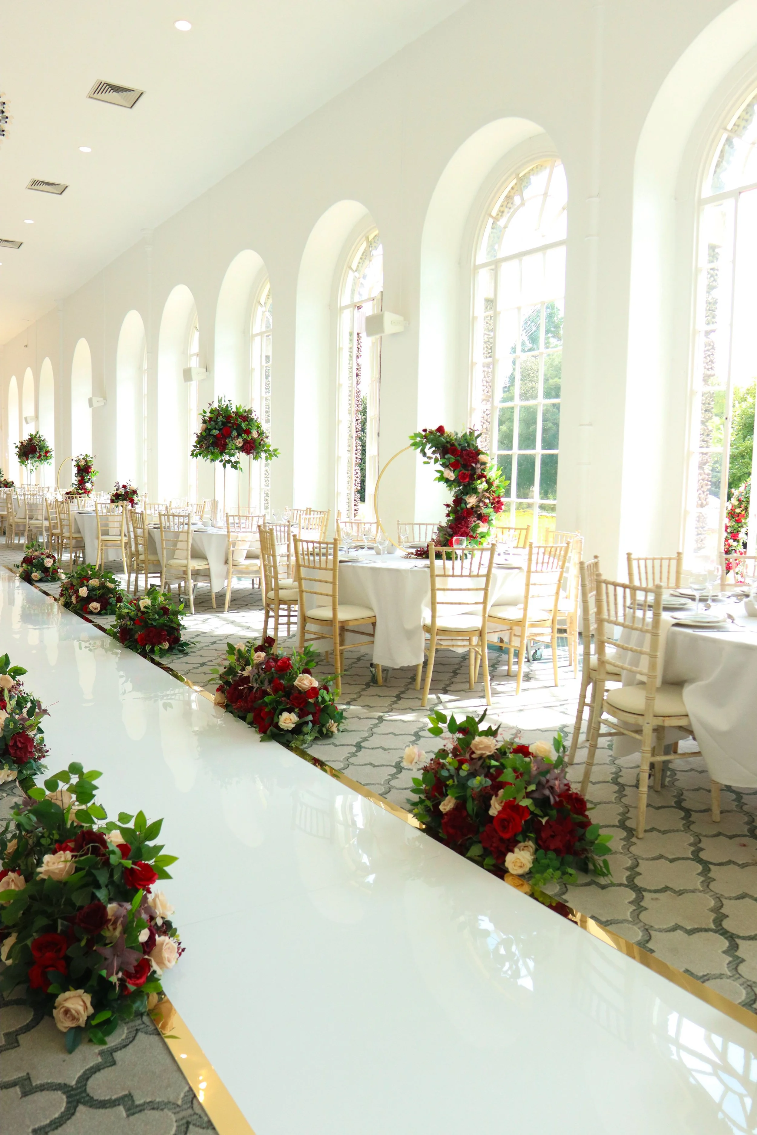 The Amour Rouge Collection captures the essence of passion and grandeur with its bold palette of deep reds, blush pinks, and lush greenery. This design is both dramatic and romantic — a perfect choice for couples who want to make a statement of love, luxury, and timeless elegance on their special day.